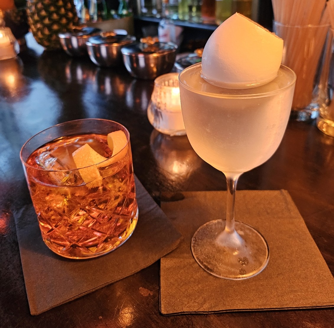 While Barchef certainly has a series of showfull cocktails, the extension of quality to their standard cocktails puts them in a high tier. The open ceiling, comfortable tablespace, and seek marble bar design makes for an excellent memorable space.